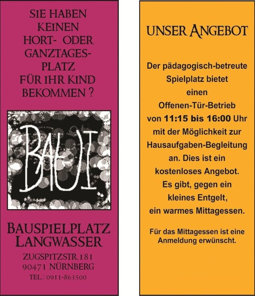 Kurze Darstellung der Einrichtung Bauspielplatz Langwasser